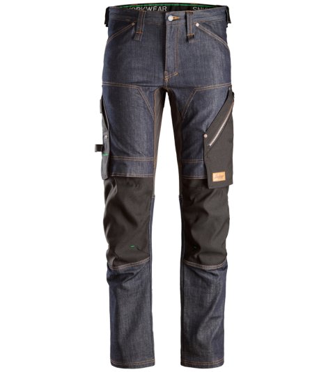 Snickers FlexiWork Denim Arbeits- Arbeitshose 6956, slim-fit Blau / Schwarz EN 14404, PPE 89/686 EEC