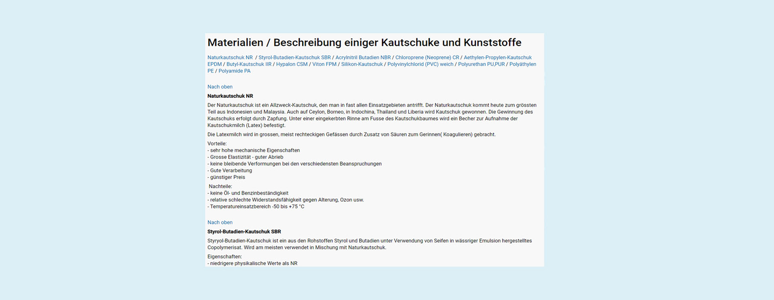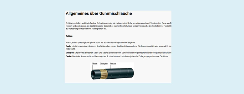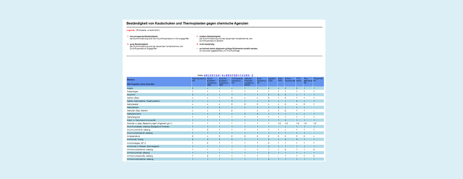 Nutzen Sie unseren Ratgeber mit allen wissenswerten Informationen wie Datenbätter, Sicherheitsdateblätter, Beständigkeiten ud Toleranzen und vieles mehrüber unsere Schläuche, Schuhe, Armaturen und vieles mehr.