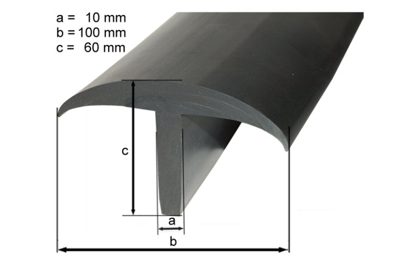 Profil en T en caoutchouc 100 mm de largeur, 60 mm de hauteur avec passerelle
